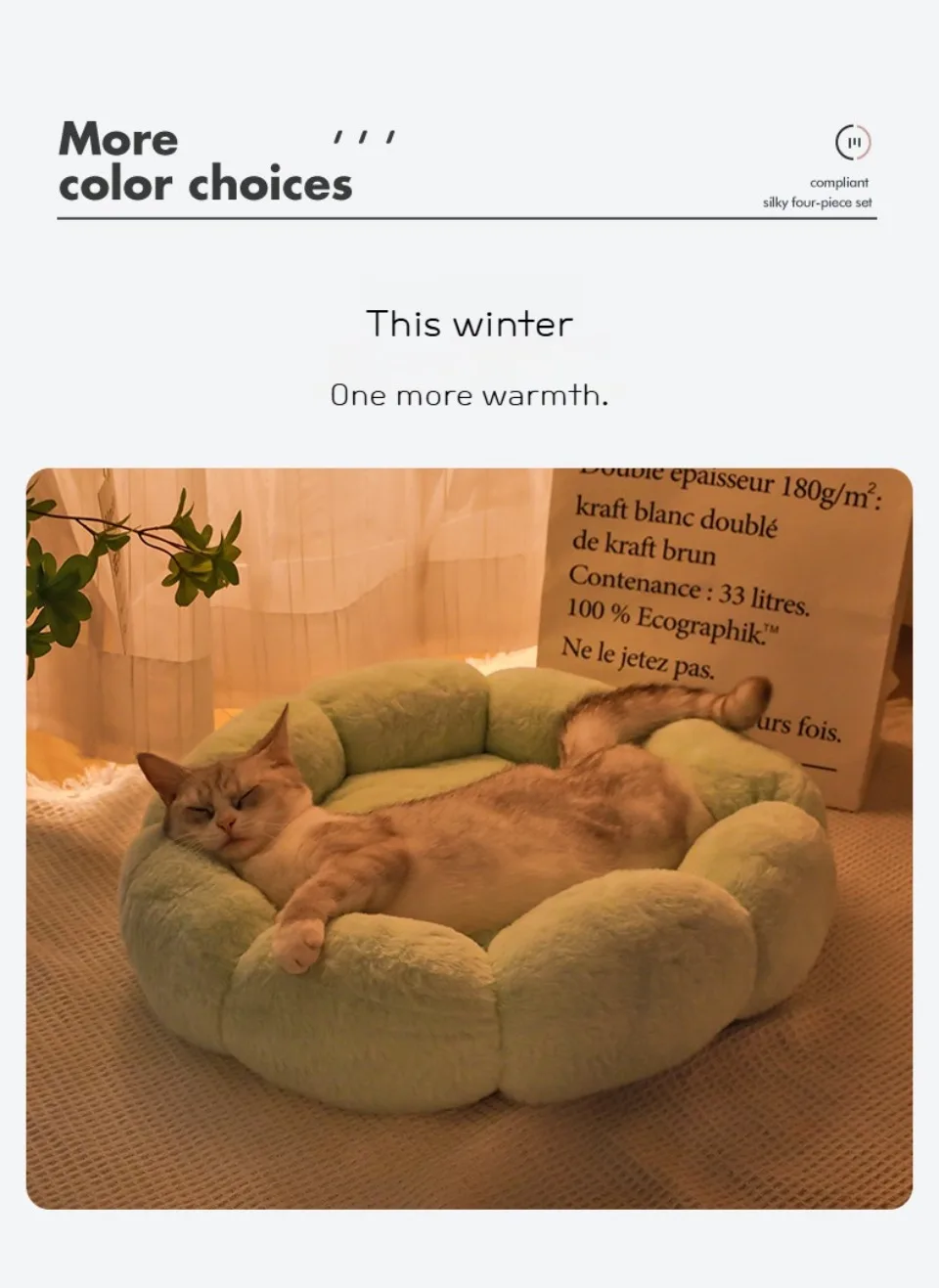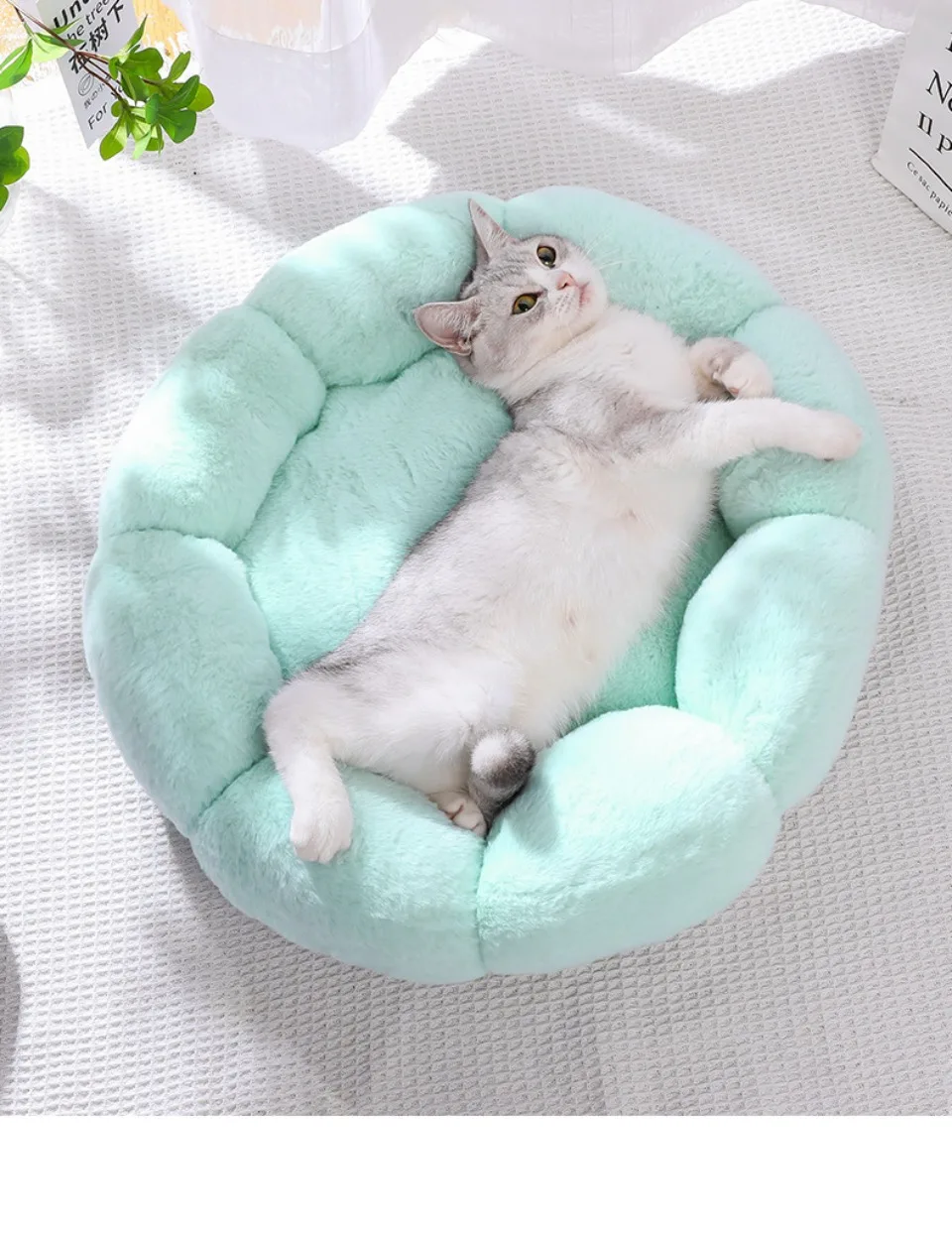 The raised rim offers head and neck support, while the round shape promotes a natural curling position for sleep. Ideal for colder seasons, this warm sleeping mat also works great on sofas, floors, crates, or any pet-friendly space.